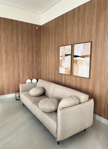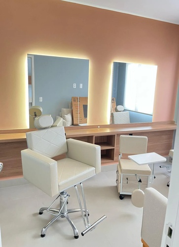 Um espaço pensado pras moradoras cuidarem das unhas com conforto e praticidade.