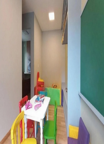 Um cantinho aconchegante pra conversar, descansar e acompanhar os pequenos brincando.